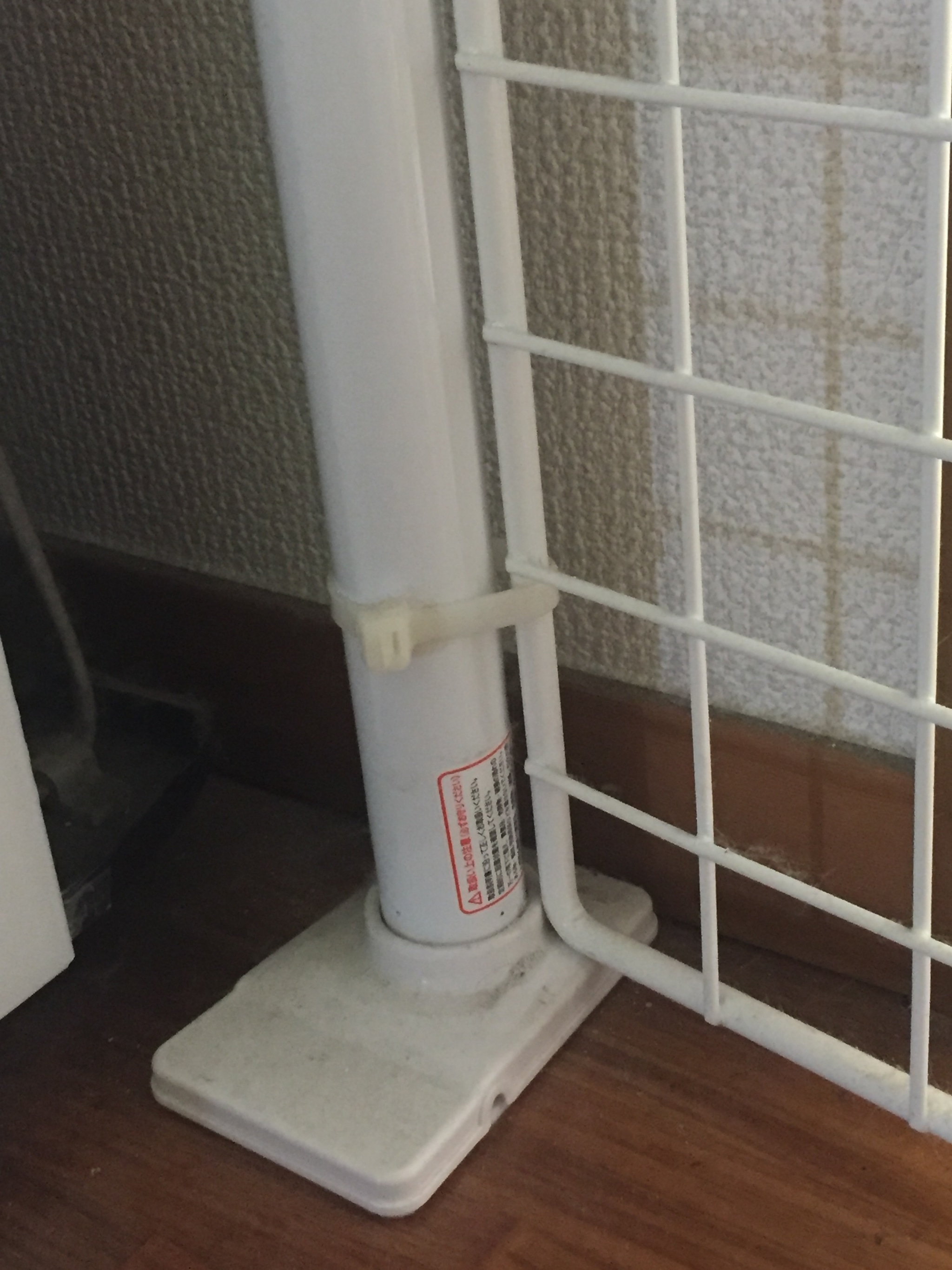ナイロンバンド(太)を使って突っ張り棒にフェンスを取り付けました。